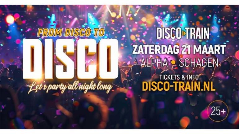 Op zaterdag 21 maart is het raak bij Alpha (Schagen, Loet 13): Disco-Train met From Disco To Disco Party.