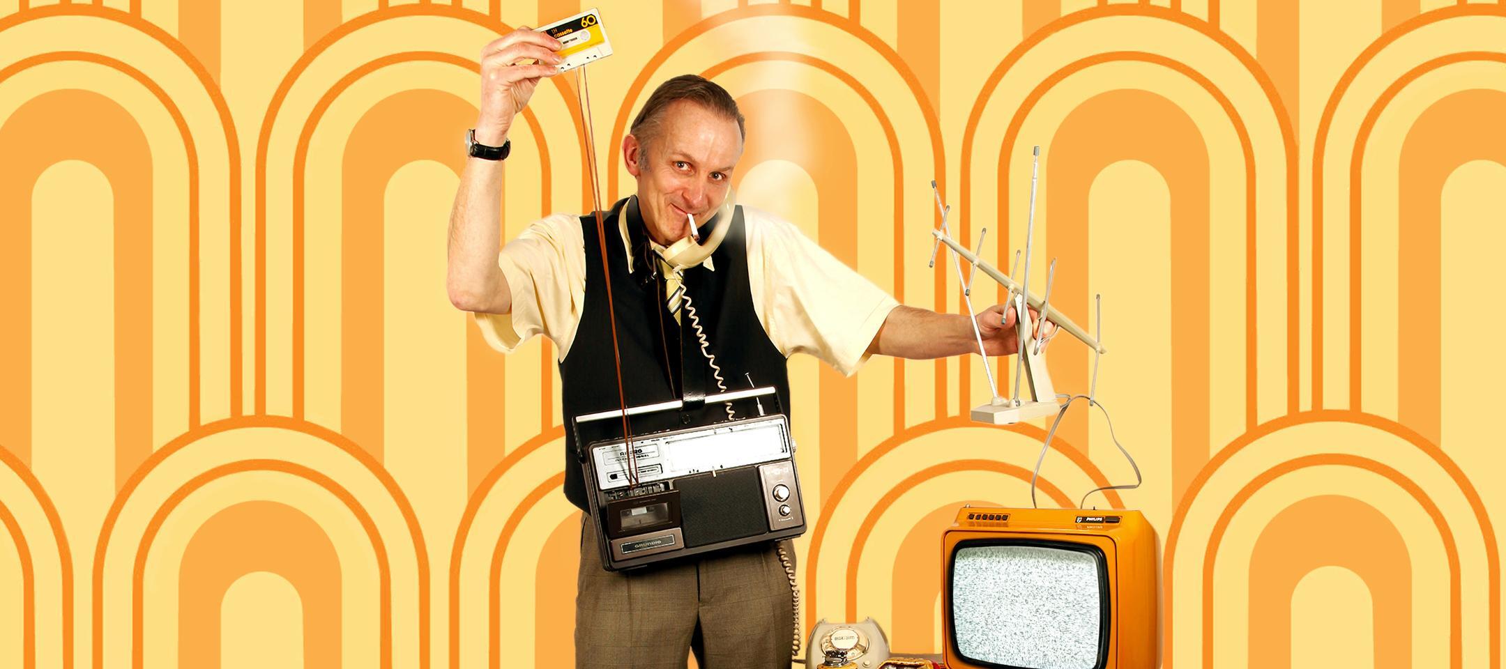 Als Toon Hermans heeft hij het erover dat hij in de trein in de jaren 70 in een rookcoupé wel eens stiekem nièt gerookt heeft… Ook muzikaal laat hij deze periode herleven, van Boudewijn de Groot en Ramses Shaffy tot Jacques Brel, Neil Diamond en Iggy Pop.