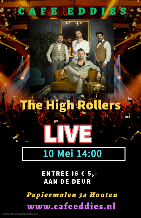 The High Rollers is met je zonnebril op, je haren in de wind, een handje aan het stuur en de andere hangend over het portier van je Ford Mustang cabrio over Route 66. Rock and Roll met een ‘silver lining’ van Blues en Country. Geïnspireerd door de helden van toen, in een eigen jasje gestoken. Entree is € 5,- Aan de deur.