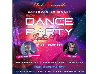 ZATERDAG 28 MAART: 30+ DANCE PARTY (LADIES NIGHT) IN CLUB NOUVELLE AMSTELVEEN.