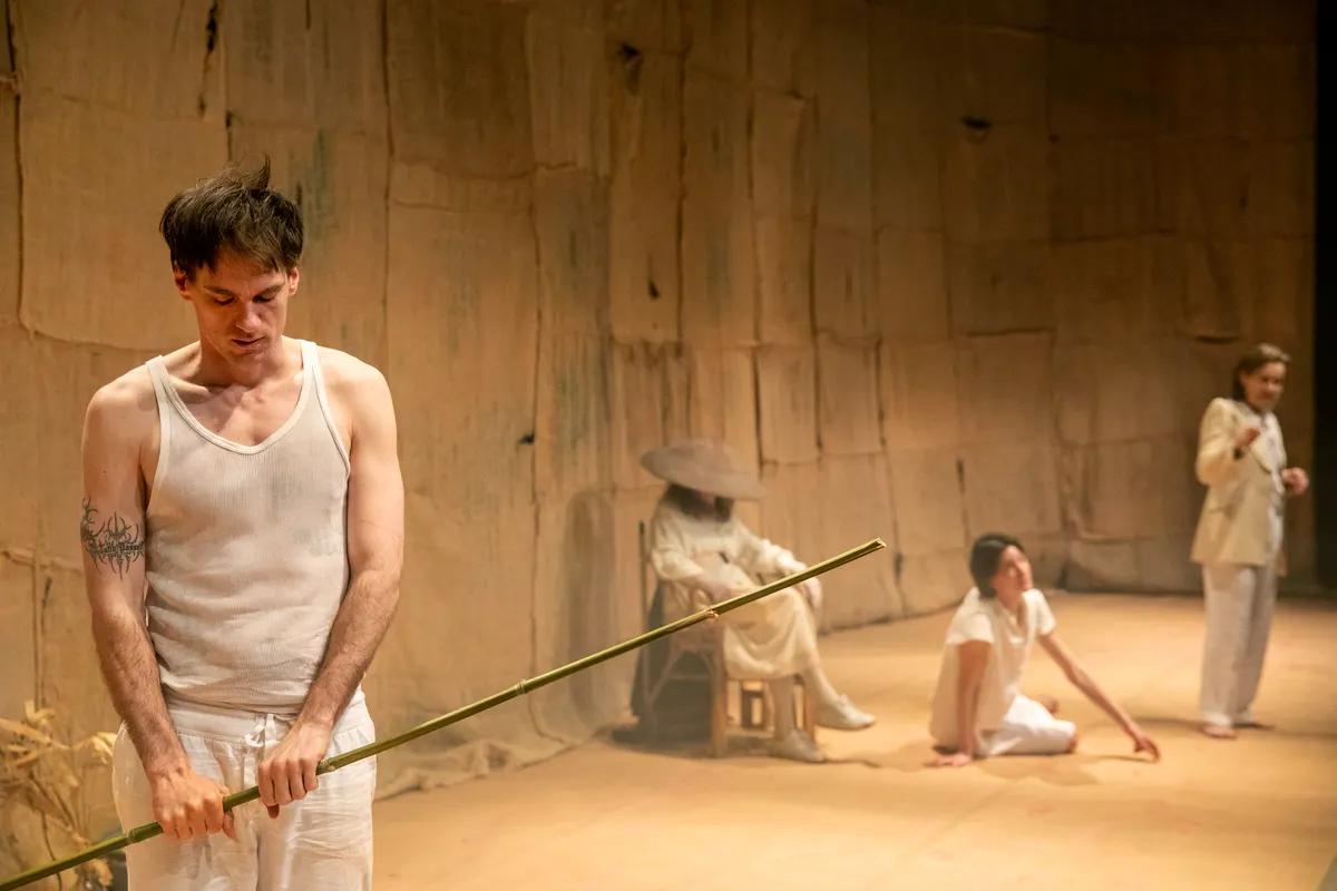 De moeder is dood, maar werkt actief mee aan de voorstelling, alle tijden lopen door elkaar.