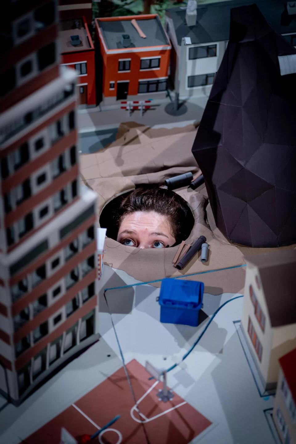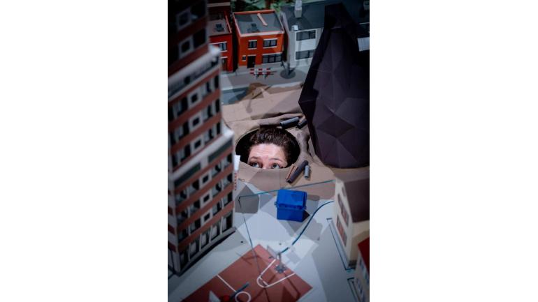 In Om de hoek woont een struik brengen theatermakers Sonja van Ojen en Hendrik Kegels een zelfgebouwde miniatuurwereld tot leven. Een betoverende voorstelling waarin we niet kijken naar mensen maar naar alle andere inwoners van de stad. Zo spelen de Esdoorn, het Openbare Toilet, de Schoorsteen, de Kevers onder de tegels en de Kiosk op het plein de hoofdrol.