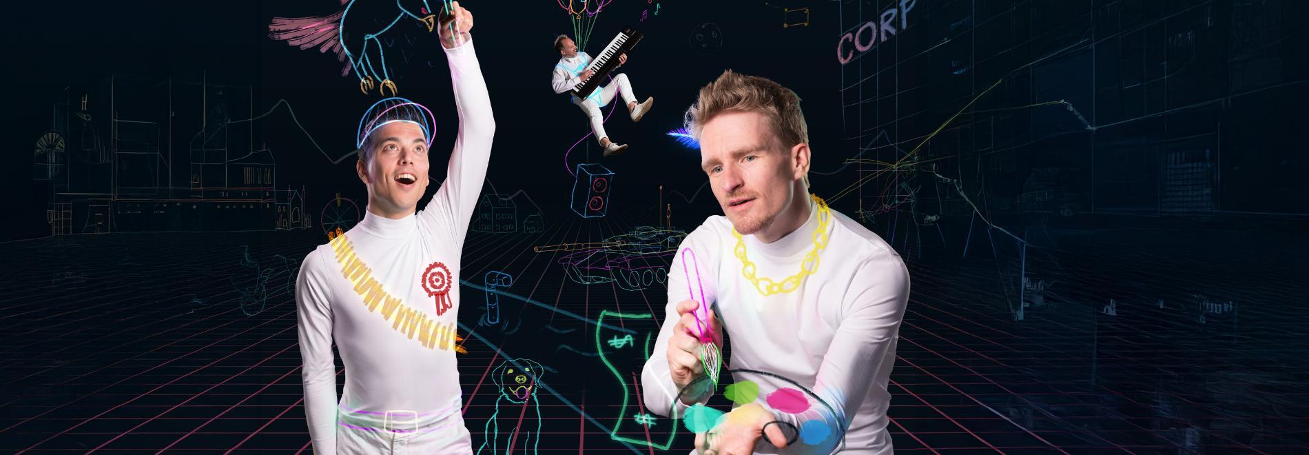 Elke avond beginnen Andries Tunru (De Slimste Mens, Spijkers met Koppen; nominatie Poelifinario 2024) en Stefan Hendrikx (winnaar Leids Cabaret Festival 2022, nominatie Neerlands Hoop 2024) weer met absoluut niks. Een blanco canvas waarop zij, geïnspireerd door jouw input, een compleet universum ontvouwen. Met de spannendste verhalen, de scherpste grappen en muzikaal omlijst door wondertoetsenist Joep Hullegie. Niets ligt vast en alles kan. De meest verrassende voorstelling van het jaar!
