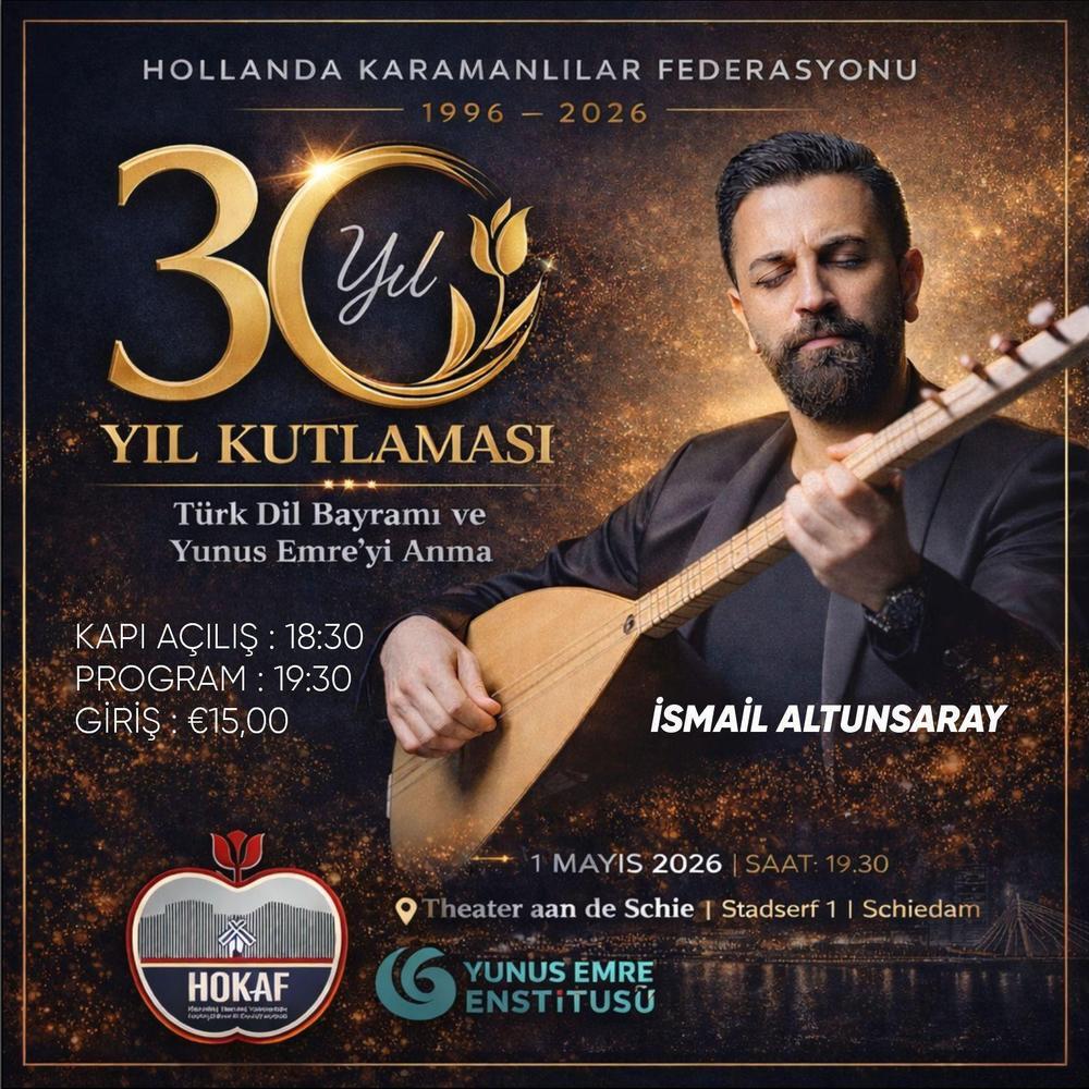 Speciaal ter ere van het 30-jarig jubileum van HOKAF Beleef een unieke muzikale avond met İsmail Altunsaray – een van de meest gerenommeerde Turkse zangers en bağlama (saz)-spelers van deze tijd. İsmail Altunsaray (1980) staat bekend als een vernieuwende vertolker van de traditionele bozlak-volksmuziek. Met zijn krachtige, emotionele stem en virtuoze snarenspel weet hij het publiek keer op keer te raken. Zijn muziek onderscheidt zich door een bijzondere mix van authentieke Anatolische klanken en invloeden uit de flamenco, wat zorgt voor een unieke en meeslepende muzikale ervaring. Mis deze bijzondere jubileumshow niet!