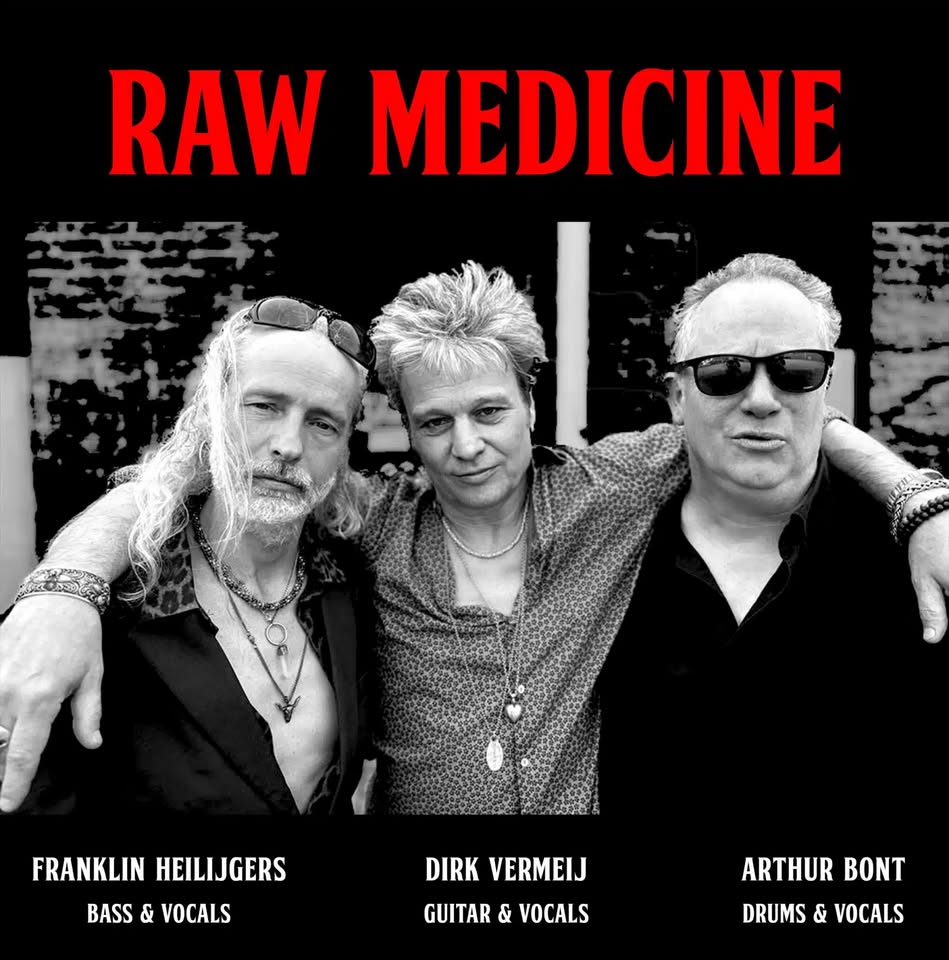 Dirk Vermeij, Arthur Bont en Franklin Heilijgers, drie professionele muzikanten met veel ervaring in bands als o.a. The Wild Romance, The Unoriginals, Smokin’Beaver, en Paris Dandies. Ondanks alle drukte van de andere projecten zijn ze elkaar nooit uit het oog verloren en blijft hun muzikale hart kloppen. Raw Medicine; deze unieke band speelt dampende rock met passie en power die je ouderwets bij de strot grijpt; just what the doctor ordered!
