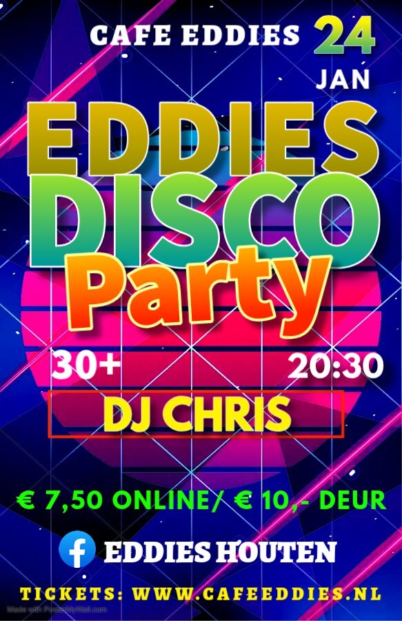 Het Nieuwe jaar beginnen we weer goed.Kom gezellig het nieuwe jaar vieren bij Eddie's. Natuurlijk zijn we ook dit weer betaalbaar. Wel zijn de online tickets beschikbaar maar tot 12:00 in de...