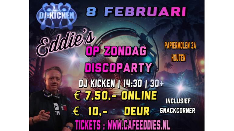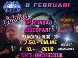 Hij is weer terug bij Eddie's DJ Kicken. Zoals altijd maak hij het altijd weer gezellig. De lekkerste hits komen weer voorbij. Verzoeknummers zijn welkom. Natuurlijk zal ook op deze zondag de snackcorner niet ontbreken. Entree is € 7,50,- Online ex.fee. Aan de deur is het € 10,