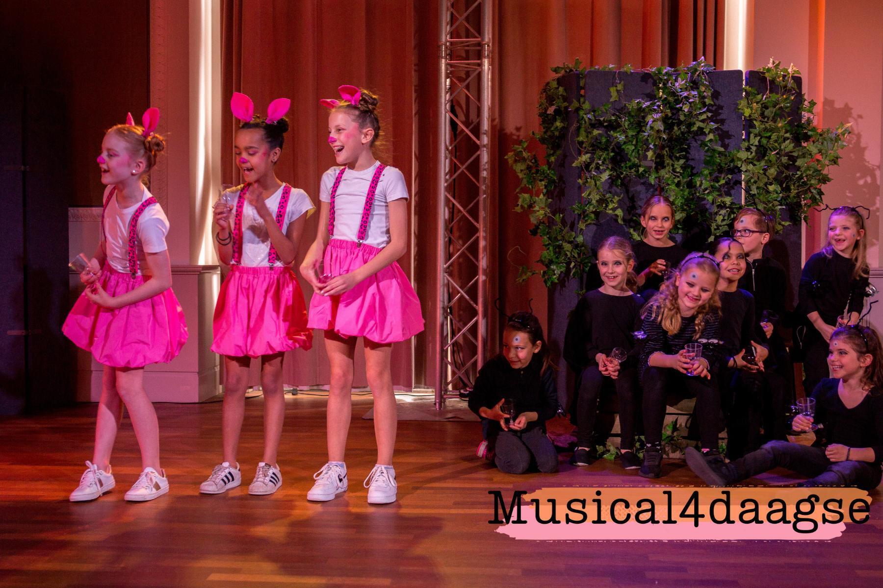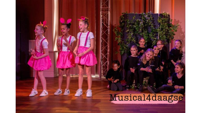 Voorjaarsvakantie 2026: 17 t/m 20 februari 2026 09:00 tot 14:00 uur6 t/m 12 jaar4 dagen zingen, dansen en acterenKosten voor vier dagen: €195 De Musical4daagse is een initiatief in samenwerking met 20 theaters door heel Nederland. Door kinderen op jonge leeftijd kennis te laten maken met theater, kunnen zij een leven lang genieten van deze prachtige kunstvorm en hierdoor ook een waardevolle bijdrage leveren aan de toekomst van de culturele sector.